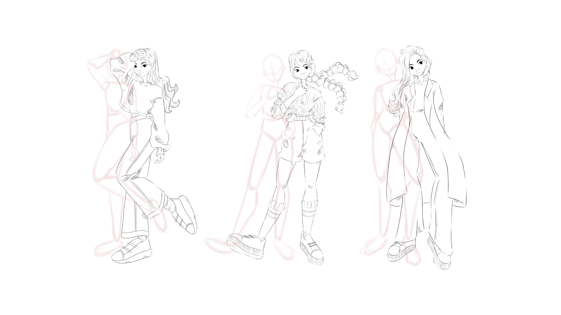 Anatomy, proportions and pose study with flat illustrations